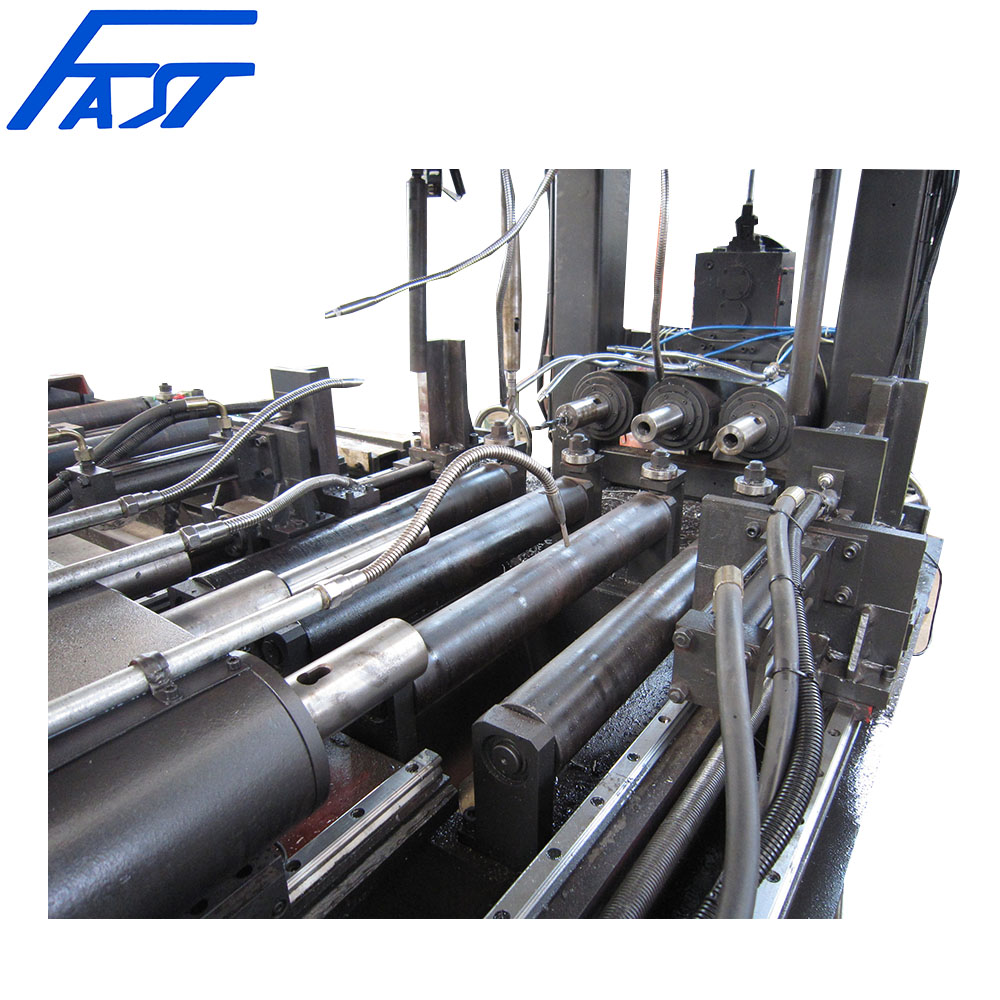 ● The feeding of the workpiec is driven by rollers, which are controlled by hydraulic and mechanical systems. The measuring wheel measures the actual feeding distance of workpiece and feeds back the result to control system to guarantee the precision the longitude position of holes.